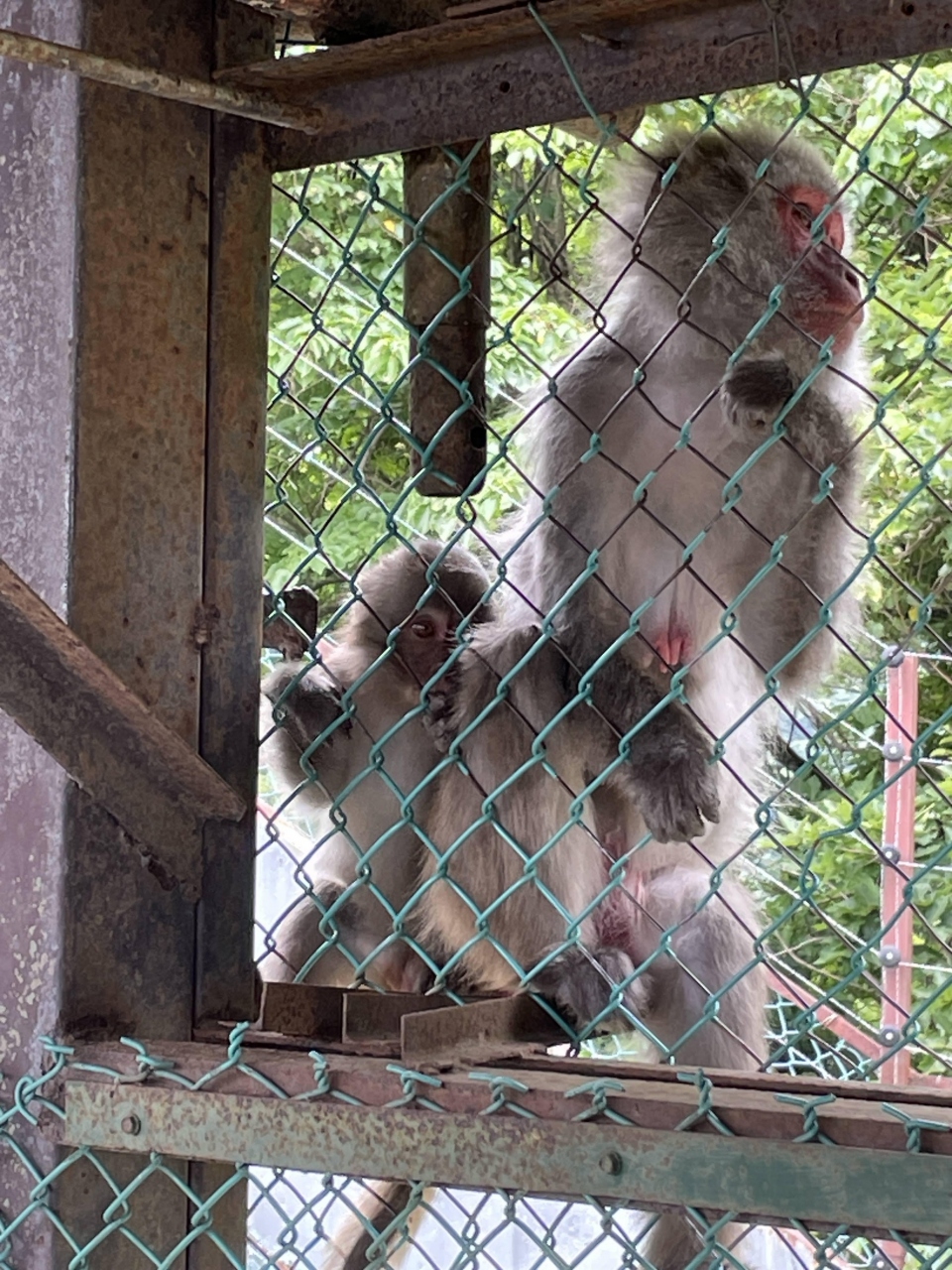 山頂駅を出てすぐの展望台の向こう側にあります。100円で売られている餌をあげることができ、猿もわかっているので一生懸命アピールしてきます。春に生まれた子ザルも数匹見ることが出来ました。