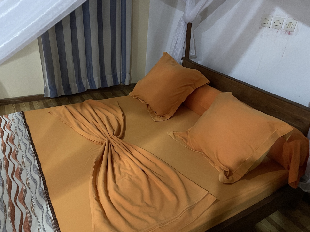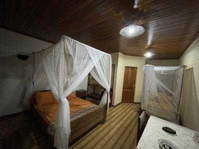 マナンブル河を渡って車で10分ほどの場所にあり、レストランからは川が見えました。お部屋はロッジ風で、ドア脇に蟻がたくさんうごめき、隣の部屋ではコオロギがシャワールームにいたそうです。新しくはありませんが、清掃はきちんとされており、蚊取り線香もありました。冷暖房などはなく、wifiも、レストランでのみ、ということでしたが、レストランですらほとんどつながらない状態でした。レストランの食事はおいしかったです。