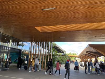 例えばゾーンAからゾーンBへの移動に10分程度かかります。Bに着いてもゲートまでそこからまた10分近く歩く場合が多いです。移動は余裕を持つことをお勧めします。