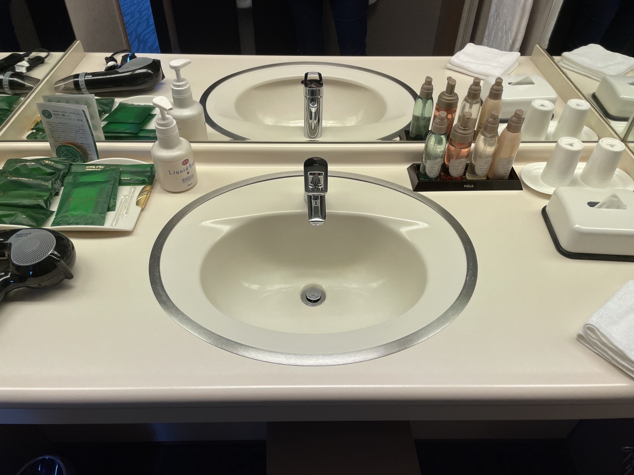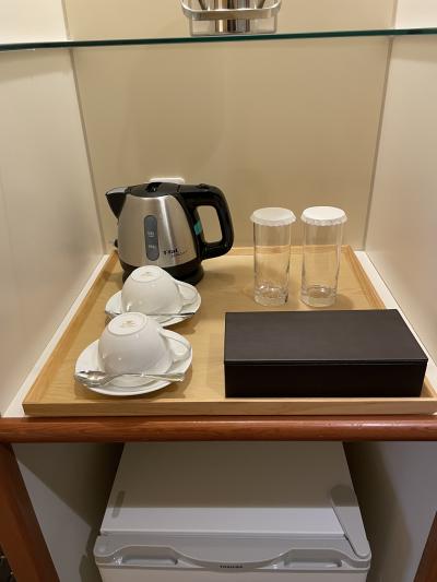 お部屋は広くてベッドも大きく、ミネラルウォーターも一人一本サービスしてもらえます。ただ、お部屋のアメニティが中国製なのが残念。