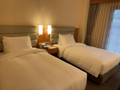 お部屋は【森のフロア】スタンダードツインルームで、2階。ベランダがありましたが、見える景色はホテル入口と前の緑なので利用せず。お部屋自体は33m2と広く、セミダブルのベッドにベッドにもなりそうなソファーが二つあるのでのびのびできます。洗面所もバストイレとは独立しているので使いやすかったです。スタッフの方のサービスもよく、快適に過ごせました。2日目、清掃やタオル交換を依頼しなかったら売店で使えるクーポン500円分もらえました。朝食レストランでも、アンケートに答えると1グループにつきクーポン300円分もらえました。チェックアウトの際にもらうので、チェックアウト後に売店でお買い物を楽しみました。- 旅行時期