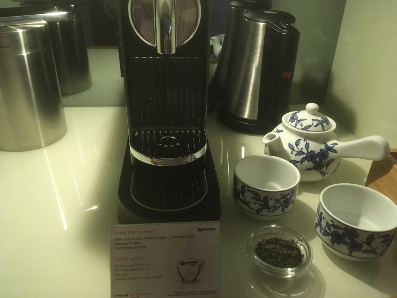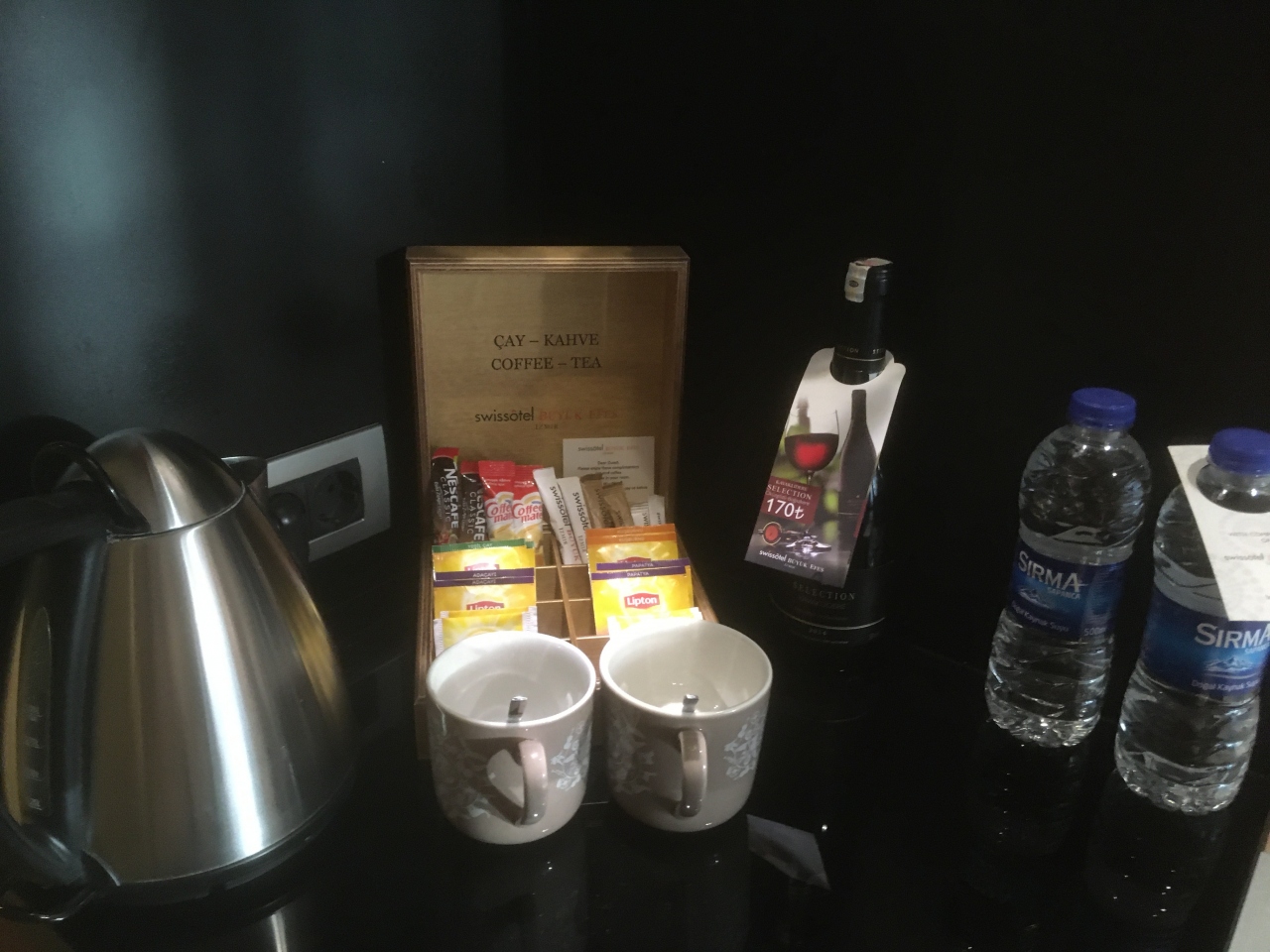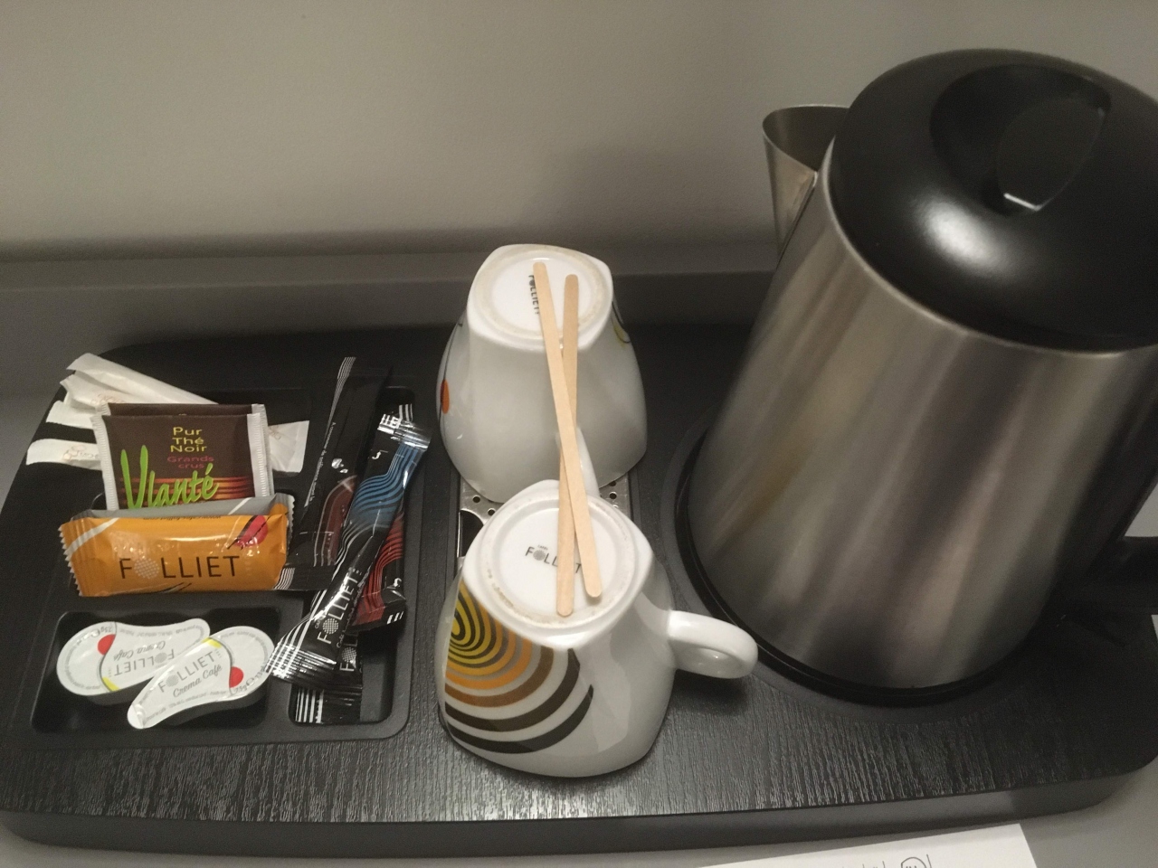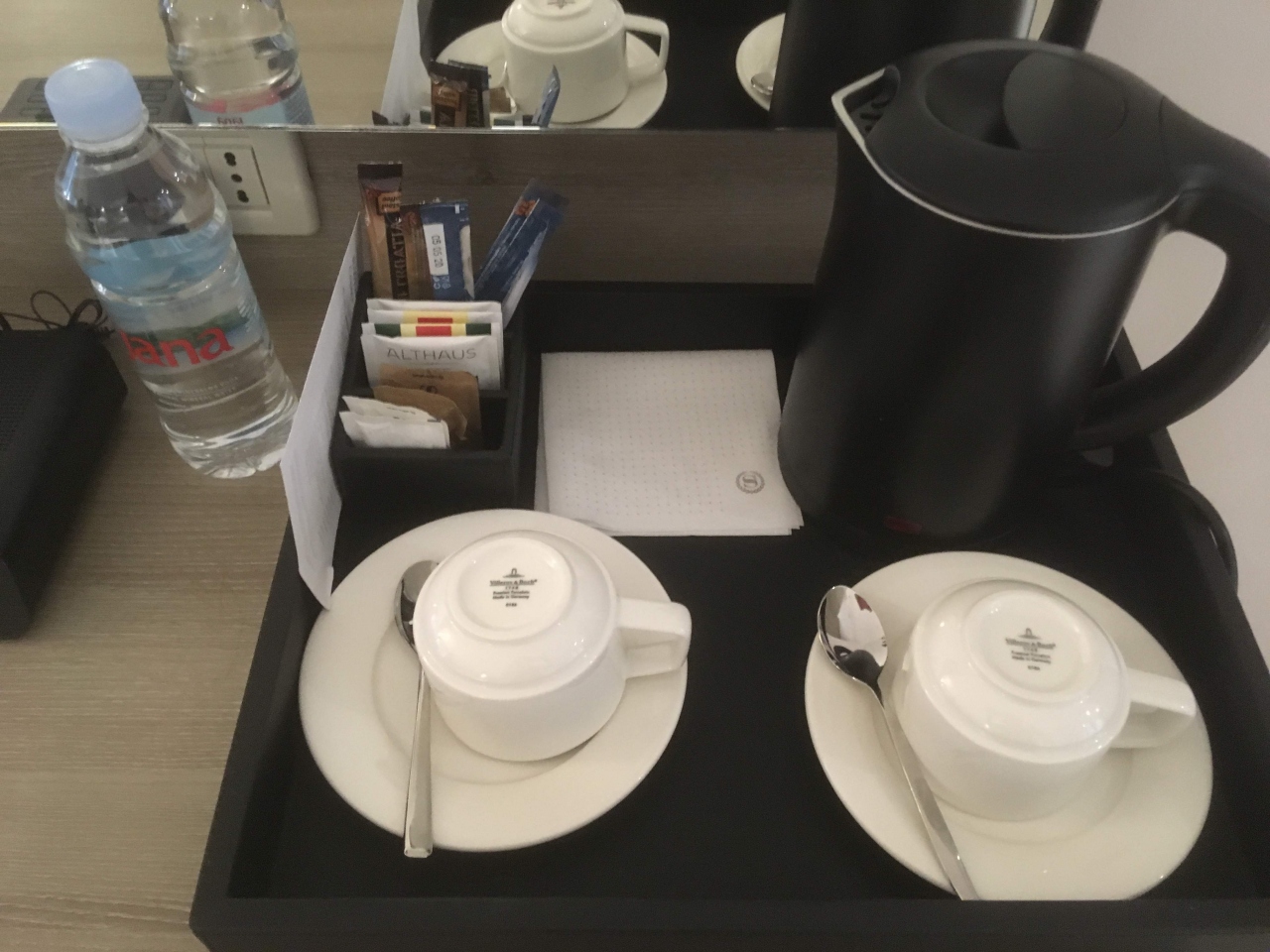 広いホテルですが、エレベーターから近い部屋だったので特に不便はありませんでした。お部屋も広く、お水とコーヒーメーカーにはスターバックスのコーヒーもありました。一杯ずつの量しか入らないのが不便ですが、沸騰はしないものの熱めのお湯になるのでポット代わりにも使用しました。