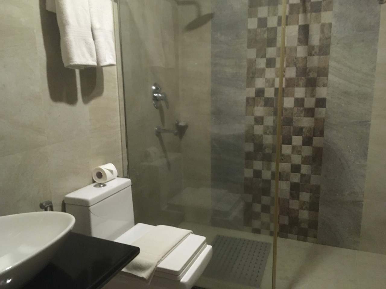 入口でセキュリティチェックがあり、スタッフの数も多く客層も良い、高級ホテルでした。お部屋も広く、バスタブとシャワールームが分かれておりスリッパや無料のペットボトルのお水も2本置いてありました。wifi速度も問題ありませんでした。外出はしませんでしたが、周りにお店は多かったようです。