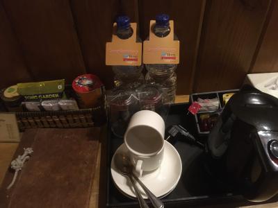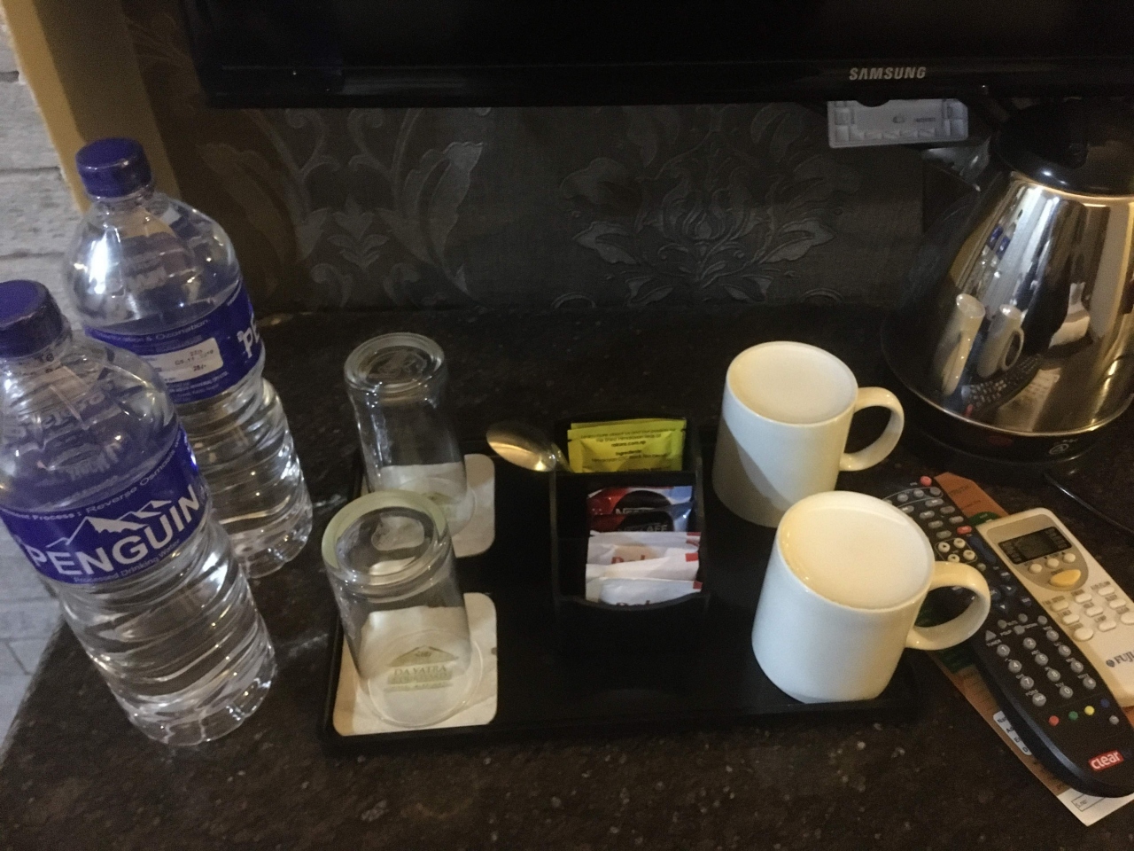 お水と電気ポット、コーヒー、紅茶、石鹸、シャンプー、ボディソープなども一応ありました。2日目の夜に短い時間ですが何度も停電していました。贅沢ではありませんが、普通に泊まる分にはいいホテルだと思います。- 旅行時期