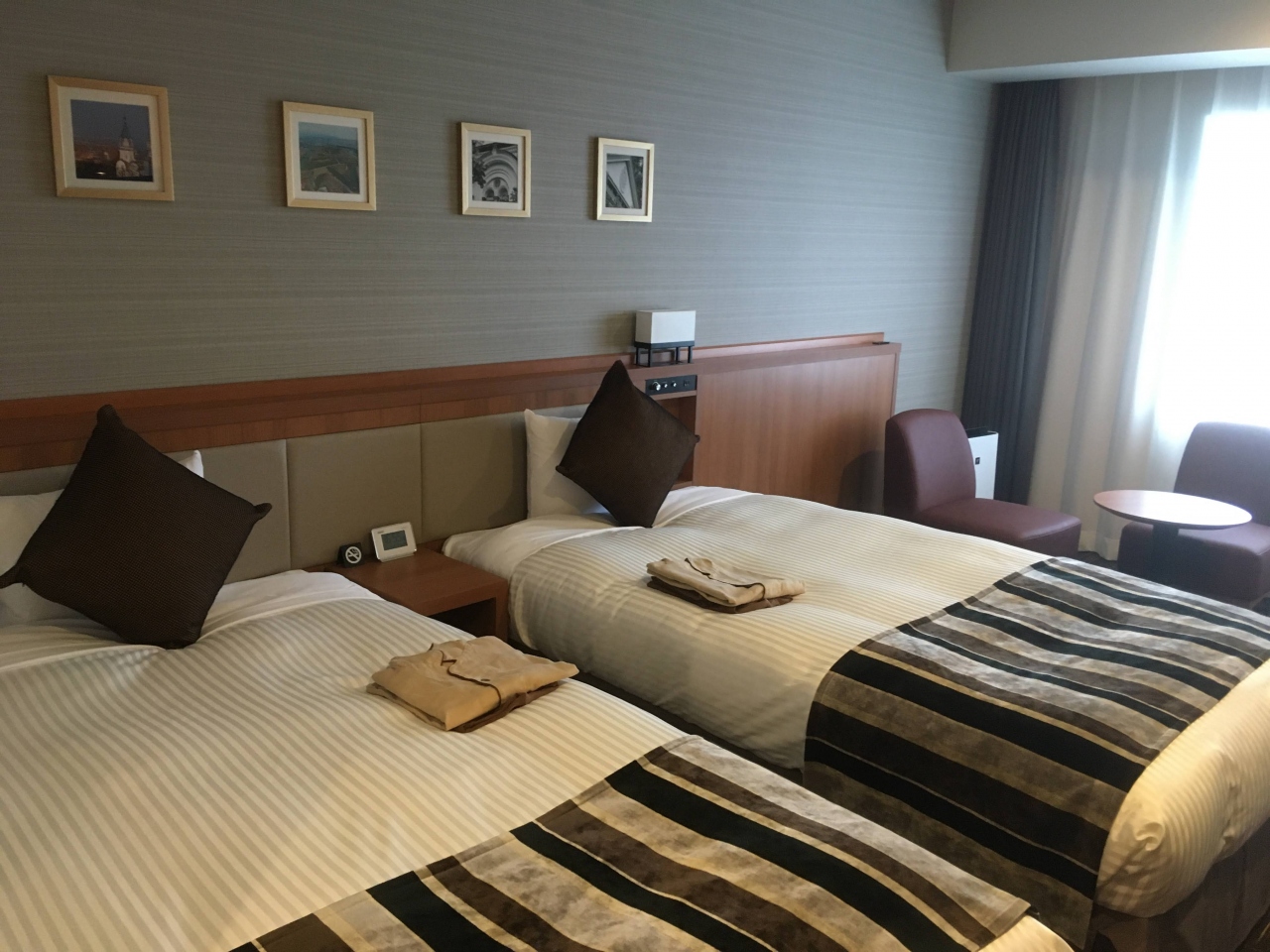 駅から徒歩8分、空港からのシャトルバスのバス停はホテルの目の前にあります。450円。駅から空港への路線バスだと300円で、かかる時間は変わりないので、お天気や元気次第で選ぶといいと思います。赤レンガ倉庫や朝市は徒歩5分以内、元町も10分程度で行けるので街中の観光は全て徒歩で出来ました。ホテル自体も高級で、ロビー、大浴場、お部屋、全てきれいに清掃されていました。部屋のwifiもさくさく使えて快適、従業員の方も気持ちのいい対応でした。ただ、古いせいか他の部屋のトイレやシャワーなど、水音が部屋の中に結構響きます。何かの機械音も夜中響いたり止んだりで結構気になりました。2日目、空調をつけて休んだら機械音は止んだので、他の部屋の空調関係の音だったのかもしれません。