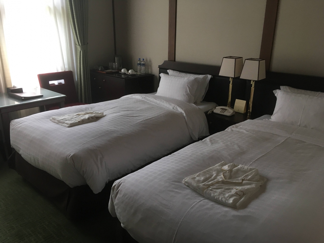 2017年に夏目漱石も泊まったという旅館の跡地に建てられたばかりなのでお部屋でもwifiが使え、色々なところも新しいです。お部屋は靴を脱いで入る形式なので日本人には嬉しいスタイル。お風呂も家庭風呂のようにバスタブの外で体を洗えます。夕食は中華、朝食はバイキングでしたが、中華は安定の味、バイキングは98種ほどのお料理が並び、その場で作ってくれるフレンチトーストや色々なサラダがとても美味しかったです。
