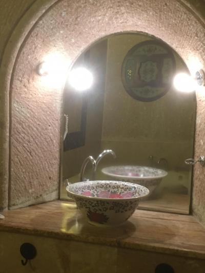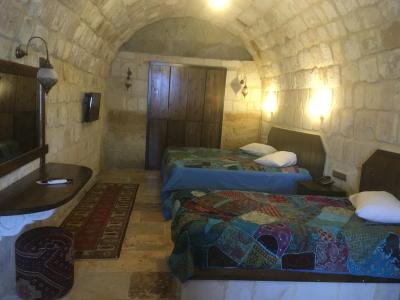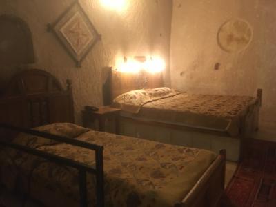 デラックスタイプとのことでお部屋は広く、リビングルームや地下室があり、ジェットバスまでありました。が、ジェットバスは壊れて動かず。連泊だったので翌日部屋に戻ると浴室の洞窟の天井から水が漏れてバスタブに泥と水がたまっていました。お部屋チェンジして少し明るめのお部屋へ。今度はお風呂場がトルコ式マッサージができるような台があるほど広く、お部屋も明るかったのですが室温が暑すぎて床暖房の5段階の目盛りを1にしても室温は29.5度のまま下がらず。あきらめてそのまま過ごしましたが熱帯夜のような一晩で、翌朝裸足で床に足を降ろすと熱くてあわててスリッパをはくほど温められていました。洞窟ホテルや古城ホテルは雰囲気は味わい深いですが、いつも設備面でがっかりします。食事やサービスは何の問題もありませんでした。- 旅行時期