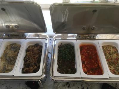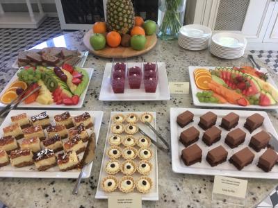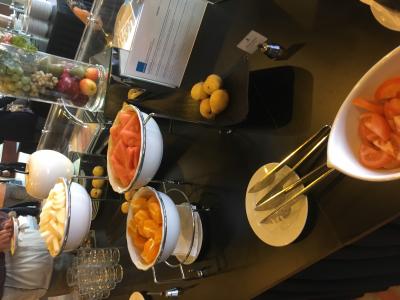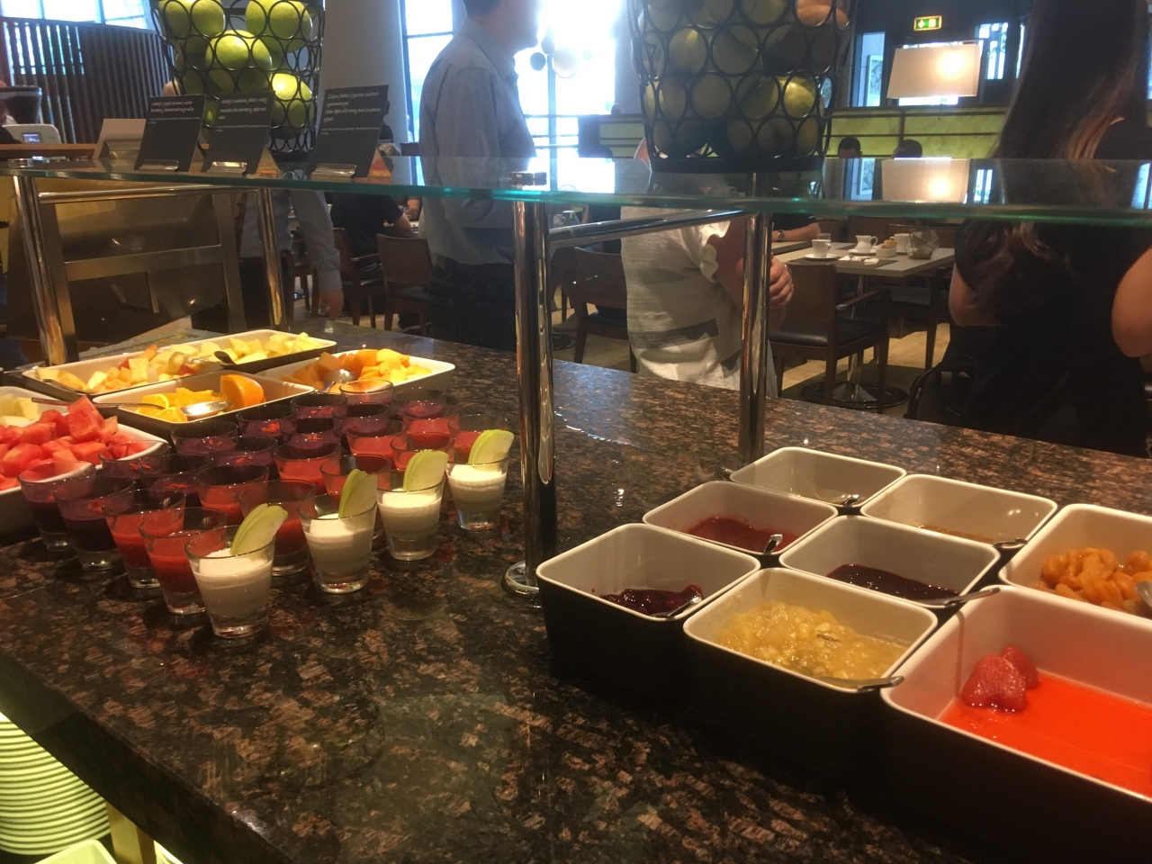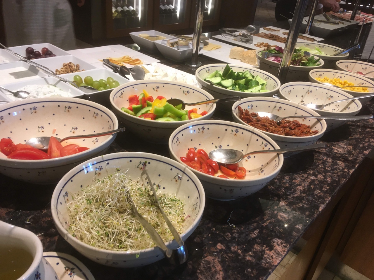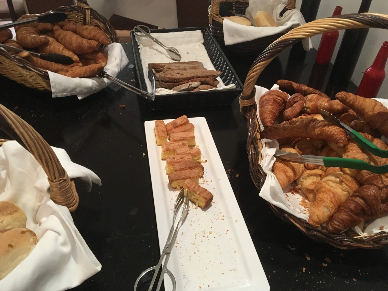 コーヒーはコーヒーの味がしないし、紅茶は薄いし、スクランブルエッグもゼラチンでも混ぜているのかと思うようなプルプルしており、ウィンナーも小さくて柔らかすぎだし、ジュースは色がついている程度の薄さ、フルーツは生は剥いていないリンゴやバナナが日によって置いてある程度で、缶詰だけです。