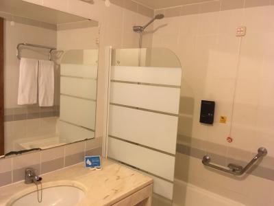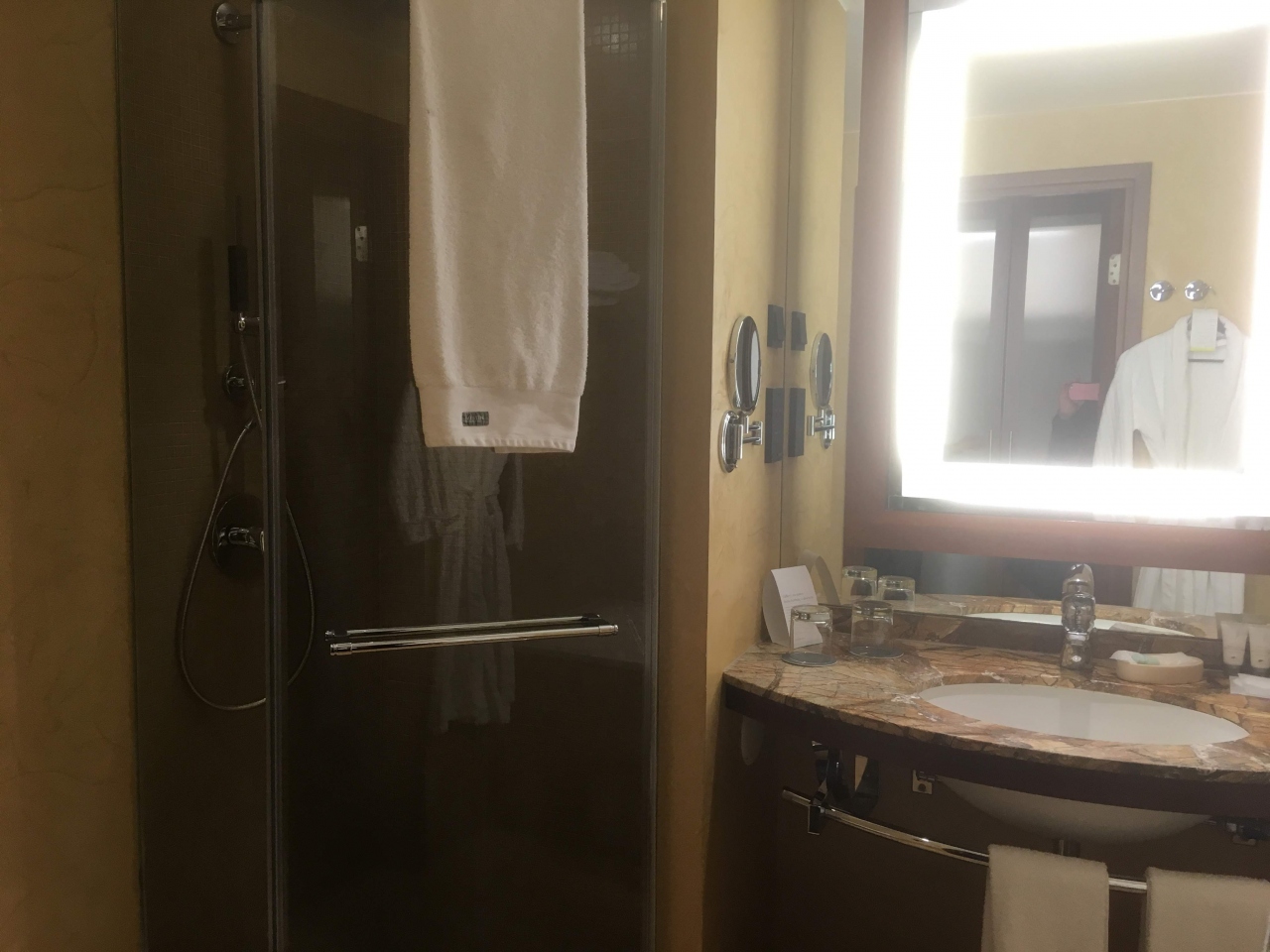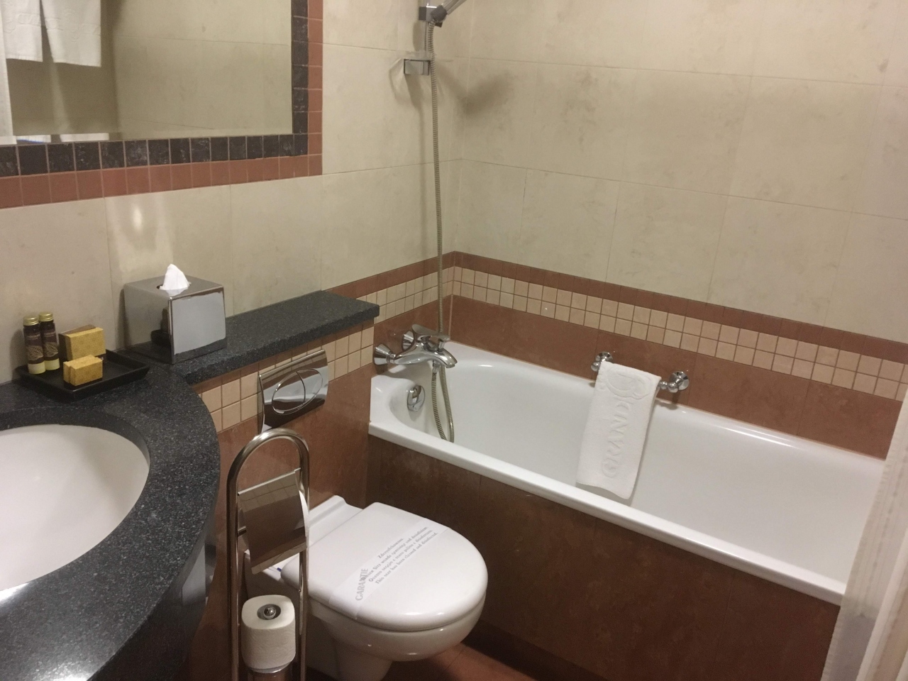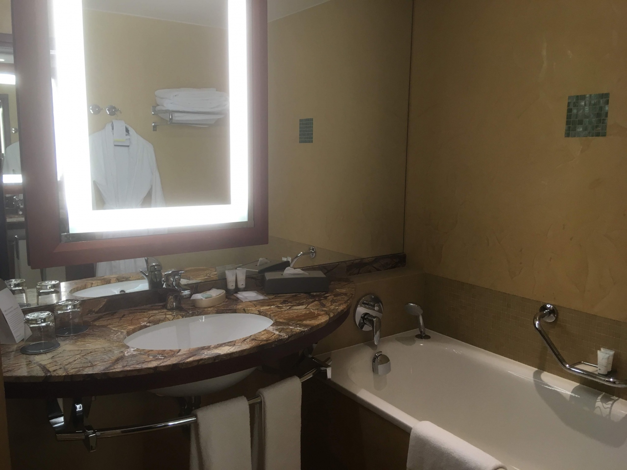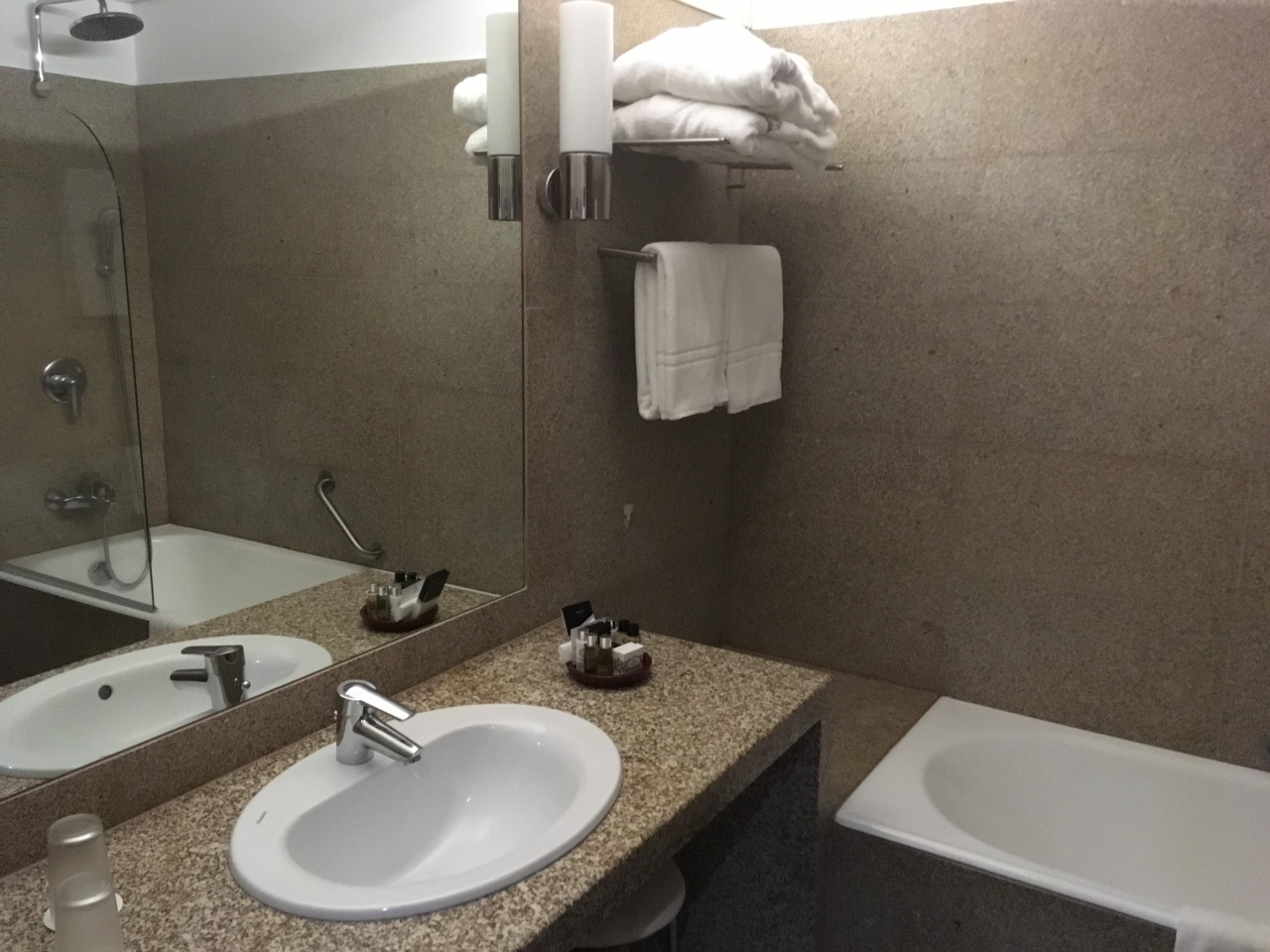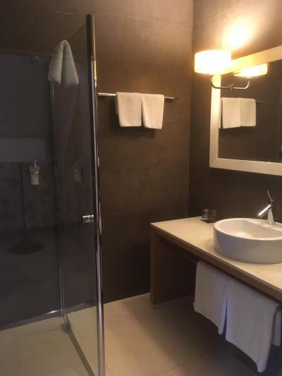 近代的な建物でお部屋も広く、シャワールームとバスタブは別になっており、ポットや無料のお水も2本ありました。無料wifi速度も普通です。