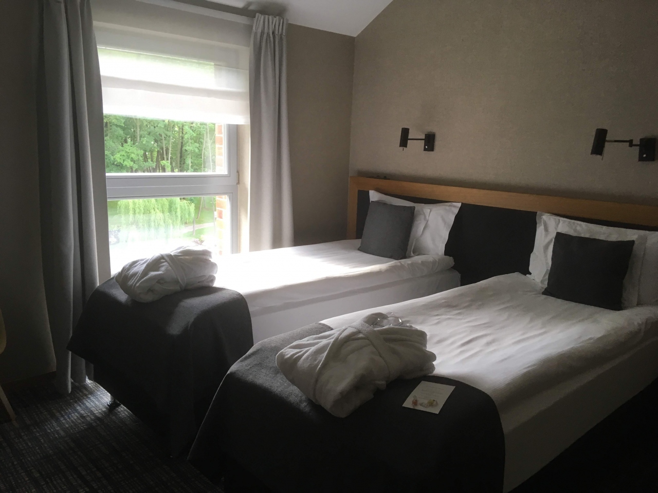 お部屋は広く、ベッドも大きく、枕も一人ふたつついています。