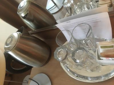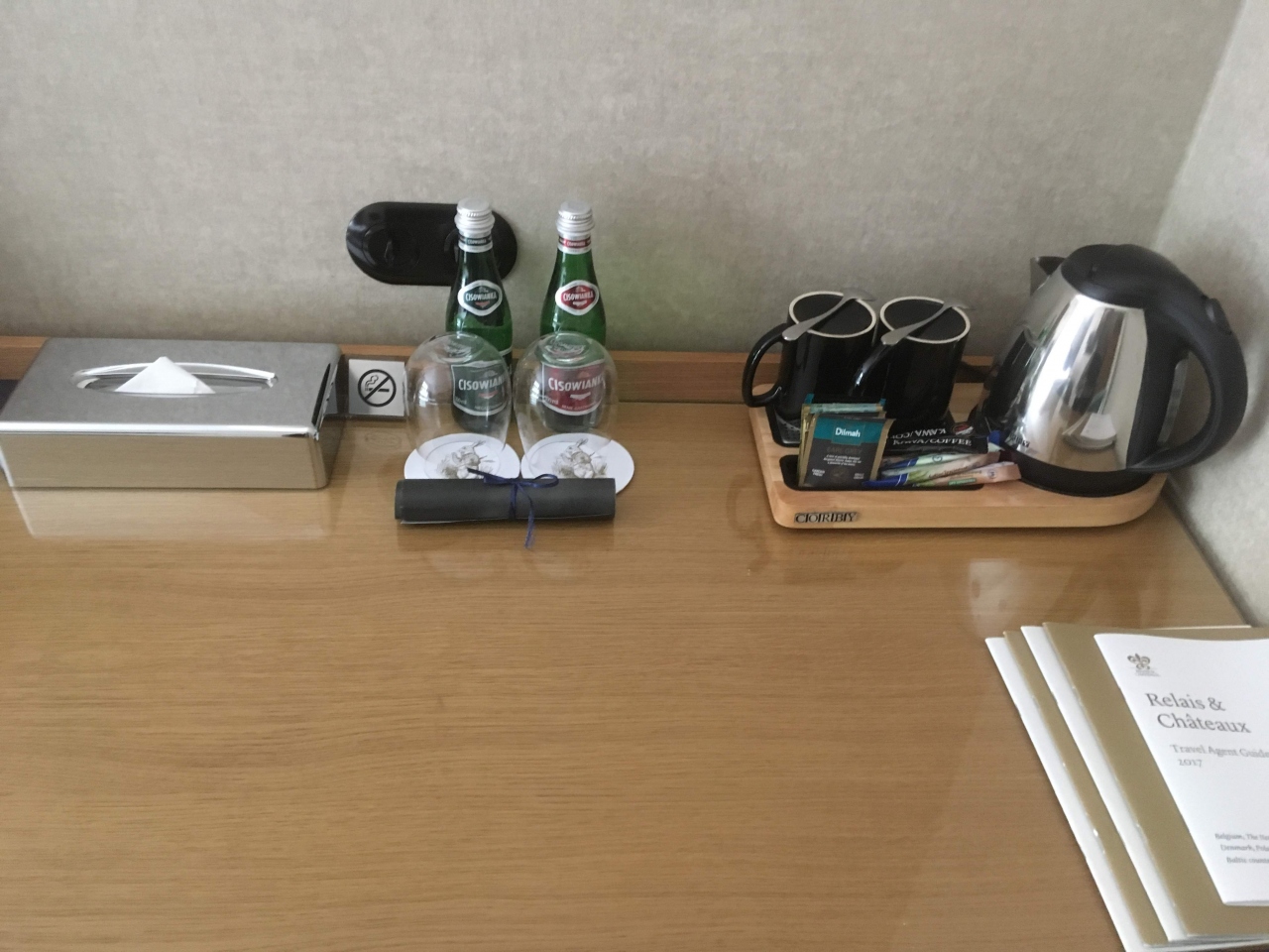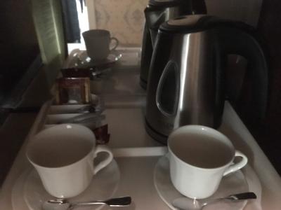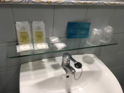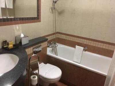 電気ポットや冷蔵庫もありました。バスルームもゆったりしていますがアメニティは備え付けのソープのみです。