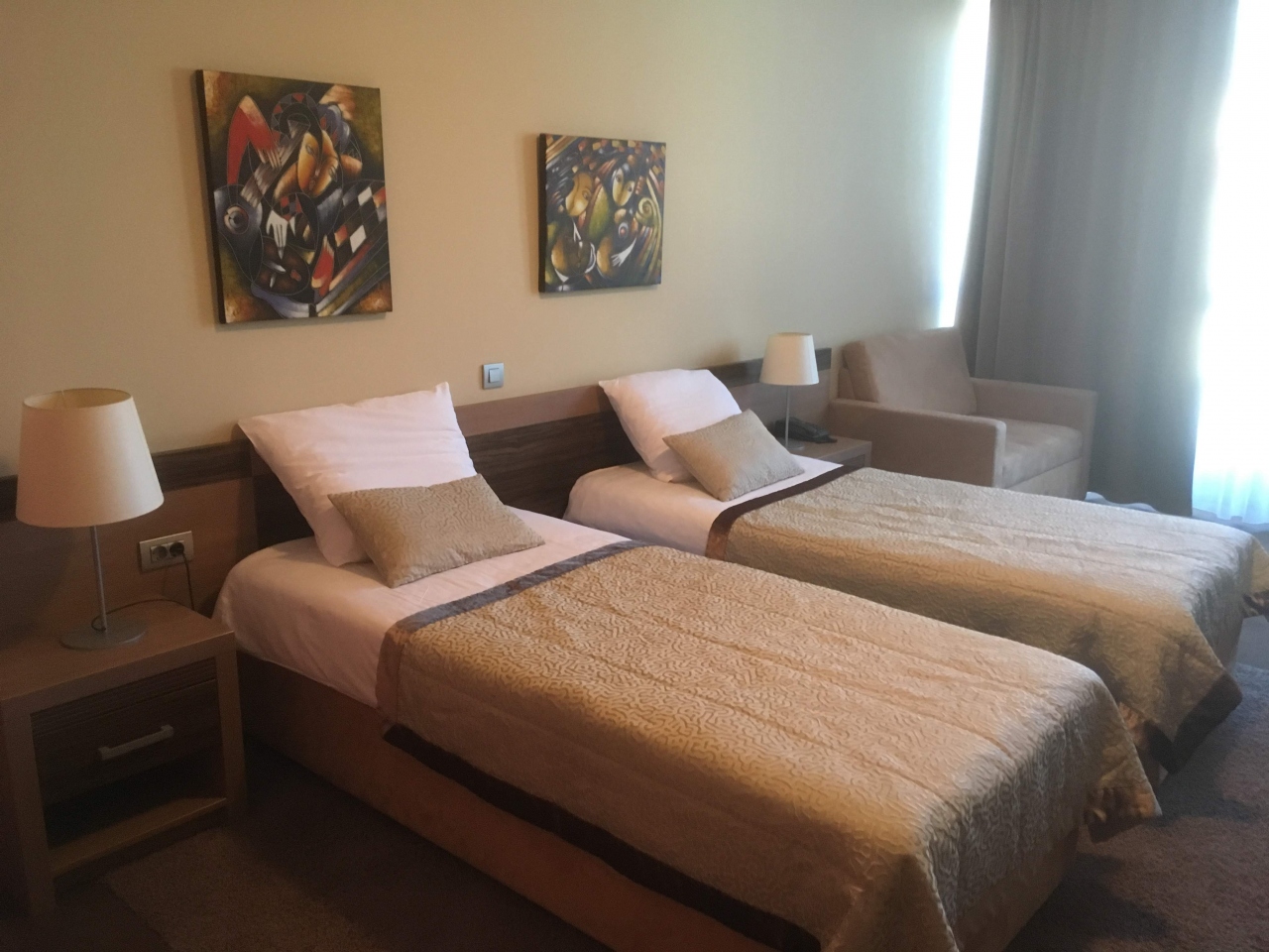 ツアーで一泊しました。外観は修道院なので地味ですが、中は改装してあるので豪華です。お部屋も広く、私たちの部屋にはソファーベッドもありました。