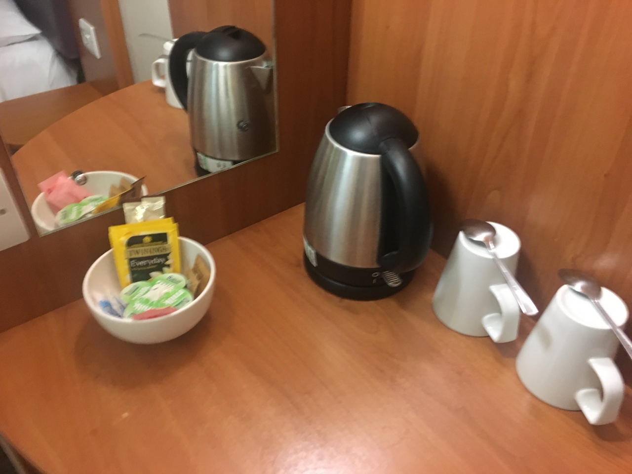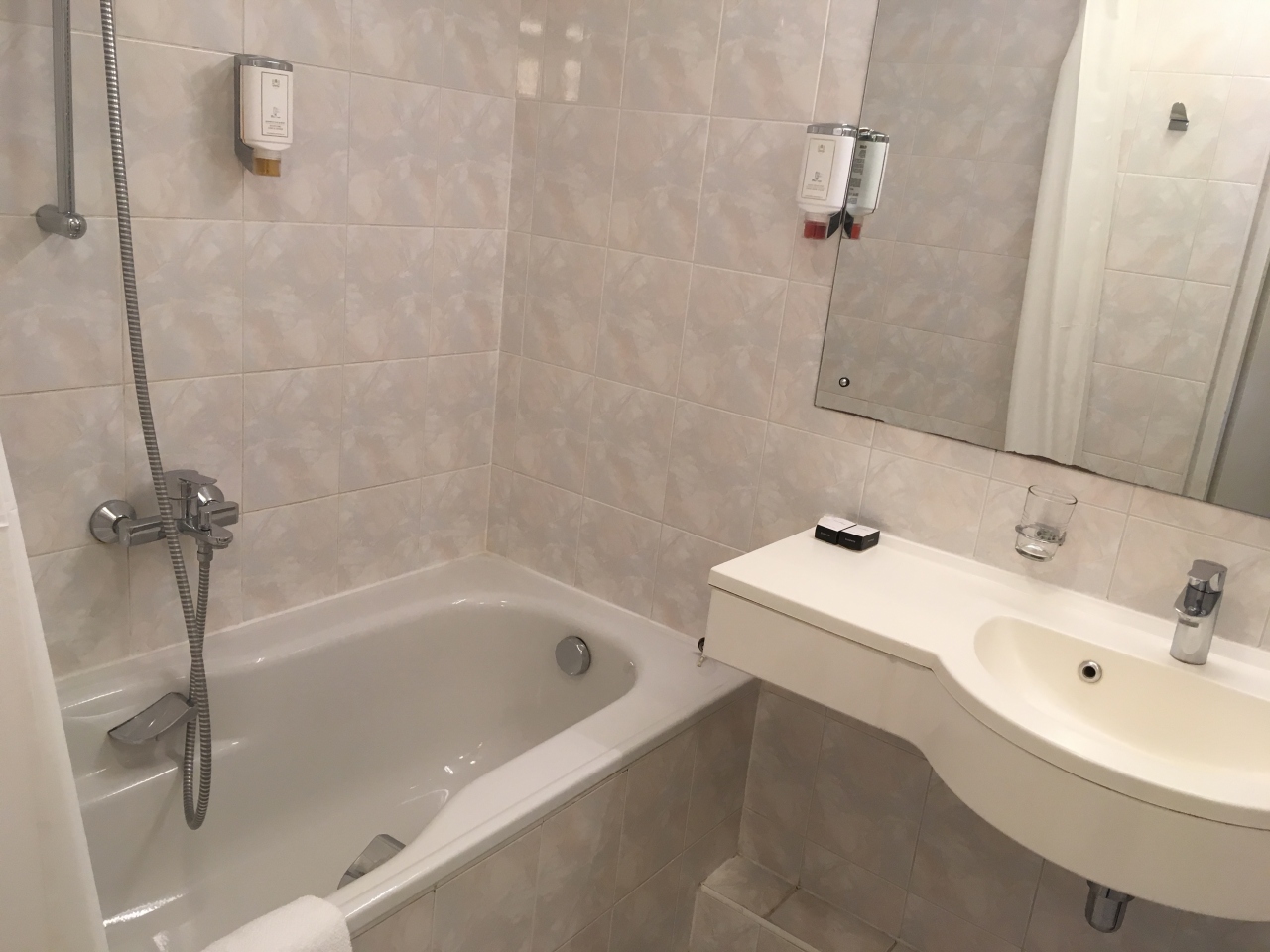 オプショナルツアー出発のビクトリア駅に徒歩5分のホテルです。スタッフの方はどなたもとても感じが良く、システムのチェックインを手伝ってくださったり、荷物を持つのを手伝ってくれたり、いつも笑顔でした。ドアマンやポーターのいるような豪華ホテルではありませんが、7泊で1000ポンド余りとロンドンにしてはお値打ちなので十分です。スーパーも徒歩数分に2,3軒ありました。(セインツベリー、リトルウェイトローズなど)部屋は小さめで、タオルもバスタオル2枚とウォッシュタオル1枚しかありません。シャワーは固定式ですが、湯量、湯温ともに充分でした。バスタブも海外にしては深めです。部屋には電気ポットもあり、コンセントも4,5か所にありました。6時半からの朝食もフルイングリッシュブレックファーストで、とても美味しかったです。(土日は7時から)出張と観光の方が半々ぐらいの感じでした。