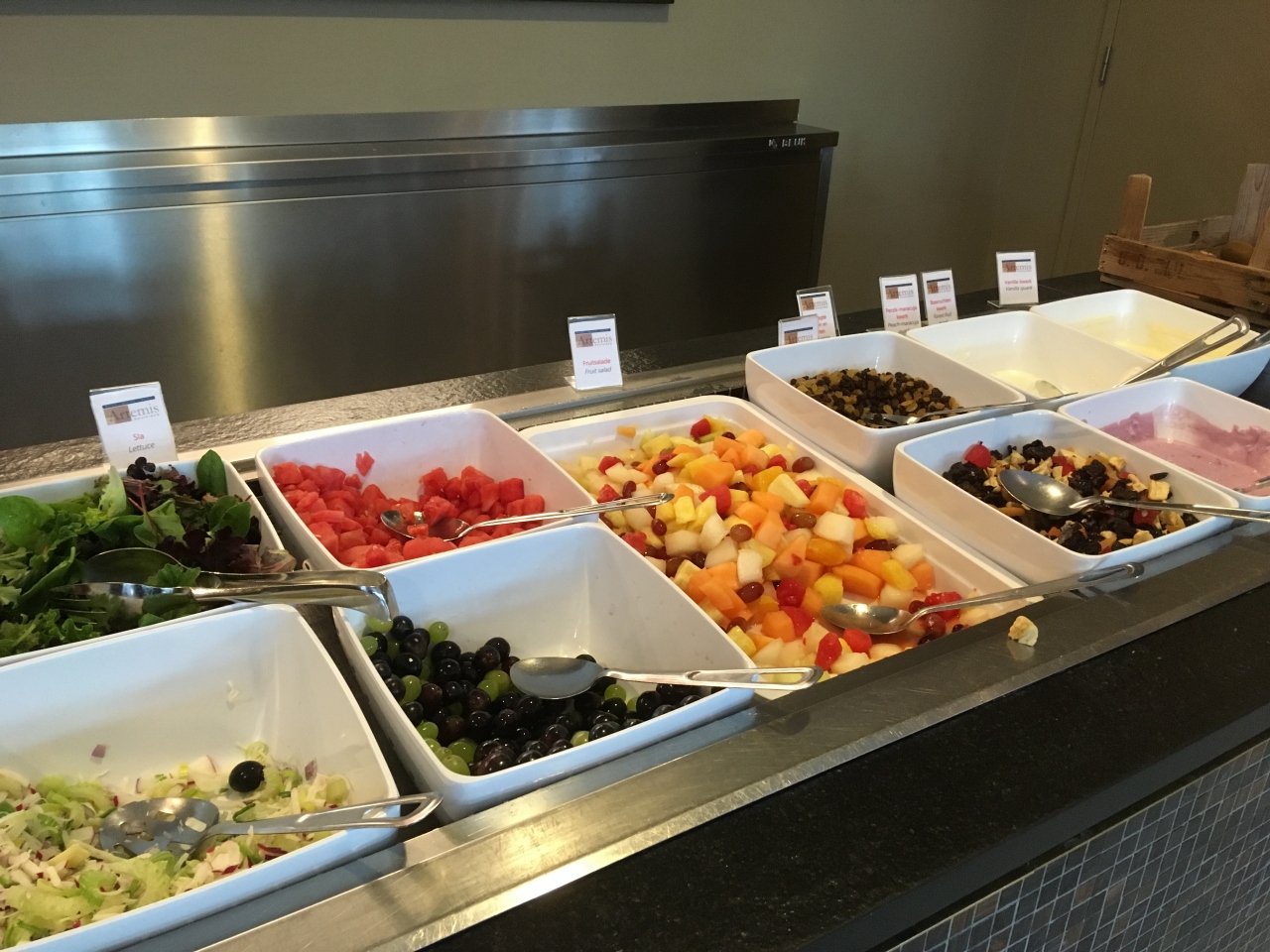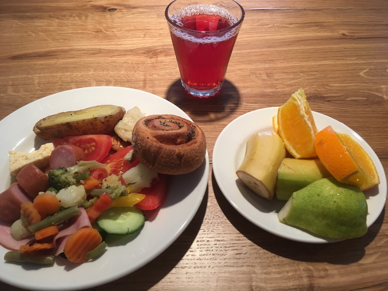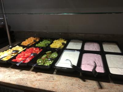 チェックインの際、ウェルカムクッキーをいただきました。朝食もホットミール、パン、フルーツ、ヨーグルト、シリアル等揃っています。