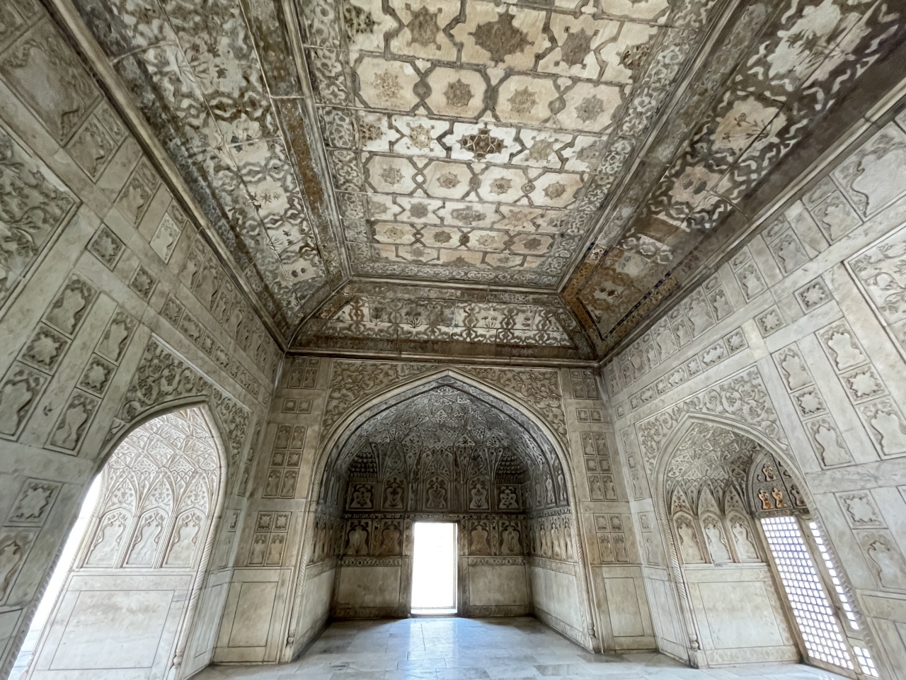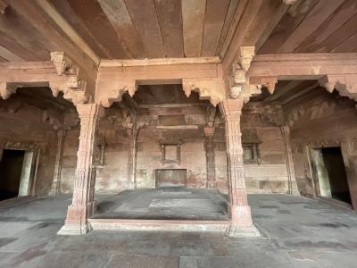 ムガール帝国3代皇帝が建てた宮殿ですが、水不足や暑さなどの理由で14年ほどで遷都されたそうです。そのため、建物の保存状態が良く残されている、とのことでしたが、窓がなく部屋の中が吹きさらしのせいか、壁画などもはげかけており、もったいなく思いました。- 旅行時期