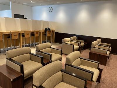 羽田空港にあるカードラウンジです。利用したのが午前中でちょうど混雑する時間帯だったのか、席に座るのに順番待ちで、席が空くと順番に案内されるような状況でした。置かれているものはソフトドリンクのみですが、それでも出発前に座ってのんびりできるのはいいものです。