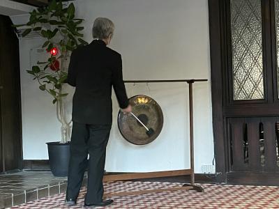 夕食が始まる時には昔からの風習で、レストラン前にある銅鑼を何度か鳴らして夕食を知らせます。夕食はフレンチのフルコースで、デザートワゴンに娘とはしゃいでしまいました。朝食は和食か洋食のチョイスで、和食を選びましたが、ボリュームもありサービスもよく、最後にコーヒーもつけてくれてとてもおいしかったです。- 旅行時期