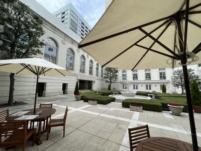 天気が良かったのでテラス席でいただきました。中庭は噴水や植え込みがあってヨーロッパのようで、外で食事をしていると海外に来ているような気分になりました。食事もおいしく、サービスも気持ちよく、素敵な時間を過ごせました。