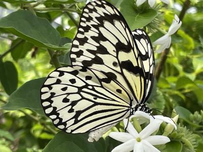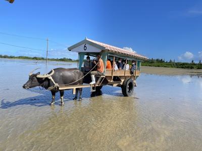 竹富島の水牛車は町並みの中を行きますが、こちらは海の中を行くので景色が広々して開放感があり、とても貴重な体験になりました。島全体が植物園のようになっていますが、お勧めは蝶々園です。沢山のオオゴマダラが手の届く場所で飛んだり蜜を吸ったりしている様子を間近に見ることが出来ます。