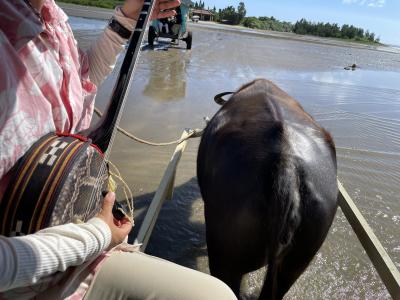 • 水牛車に乗って海を渡る