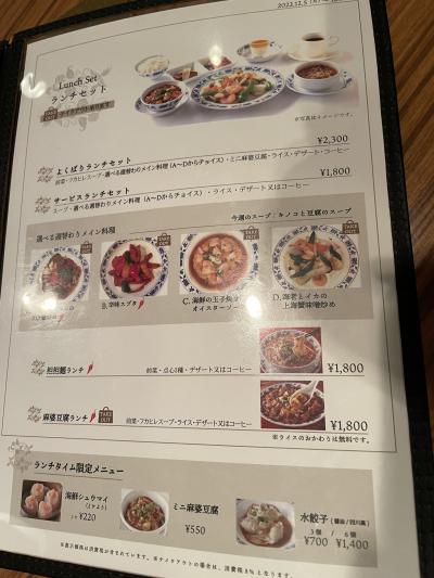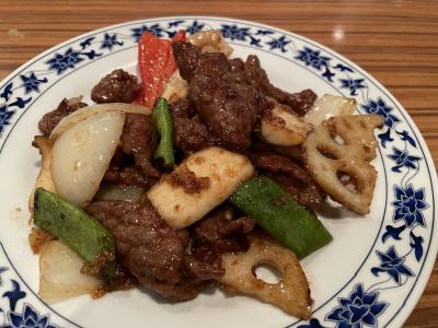 平日限定のサービスランチセット1800円をいただきましたが、メインは4種類の中から選べるなど、融通が利きました。辛い、とあった牛肉とレンコンのXO醤炒めは、それほど辛くなく、辛さ苦手な私でもおいしくいただけました。