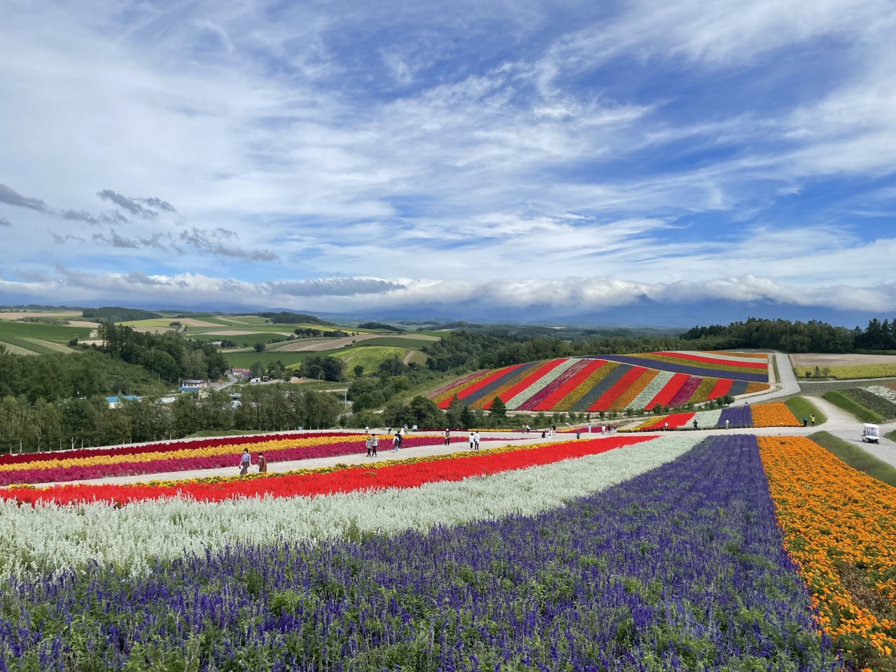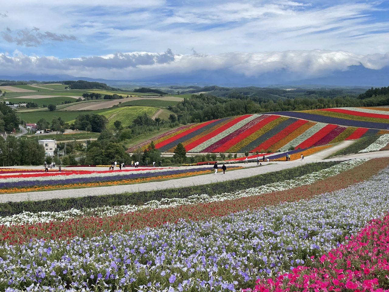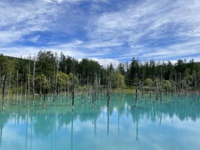バスガイドさんによると、雨が降ったりするとミルク色に濁ったり、台風が来て土砂崩れが起きた時は茶色くなって、青く戻るのに1年かかったそうです。奥に行くと、美瑛川が見えて、川の色も青いのがわかります。- 旅行時期