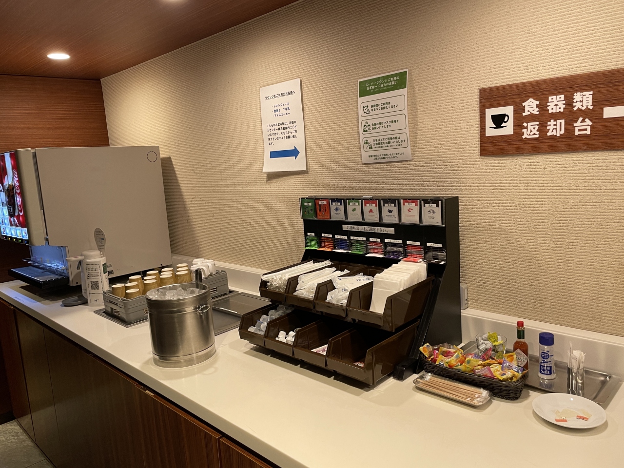 ドリンクバーとコーヒー、紅茶とキャンディとチョコレートが置いてありました。