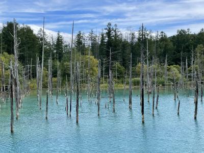 美瑛にある青い池です。ツアーで立ち寄って30分ほど見学しました。
