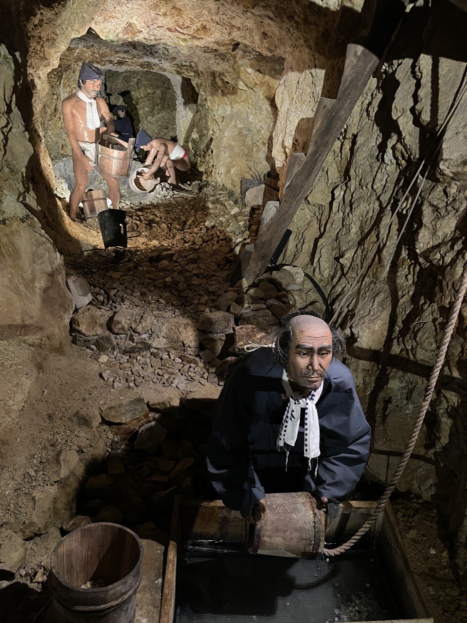 佐渡金山には宗太夫抗と道遊抗と2つの坑道を見学できますが、そのうち江戸時代の坑道跡がこちらの宗太夫抗になります。中に入るとひんやりして、展示してある人形で当時の作業や仕事の様子がわかるようになっています。パンフレットには所要時間30分とありましたが、軽く流して見たら20分弱で見終わってしまいました。- 旅行時期