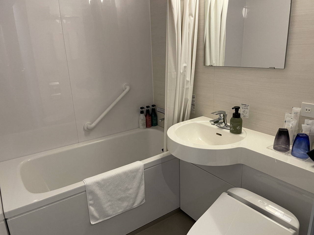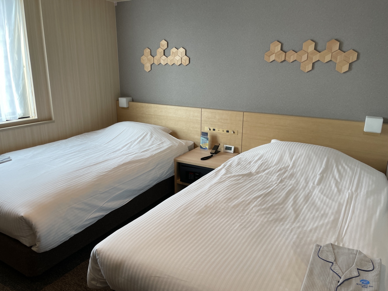 駅からは本当に近く、線路向こうにコンビニ、道を渡ればスーパーがあるので便利です。目の前にMY遊バス乗り場やチケットを売っているとさてらすもあります。お部屋も新しくきれいで、wifi速度も普通、冷蔵庫も透明なので中のものがすぐわかります。バスタブも深めなのでゆっくり温まれました。