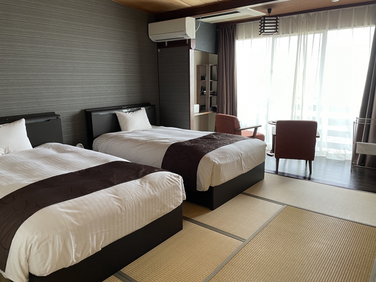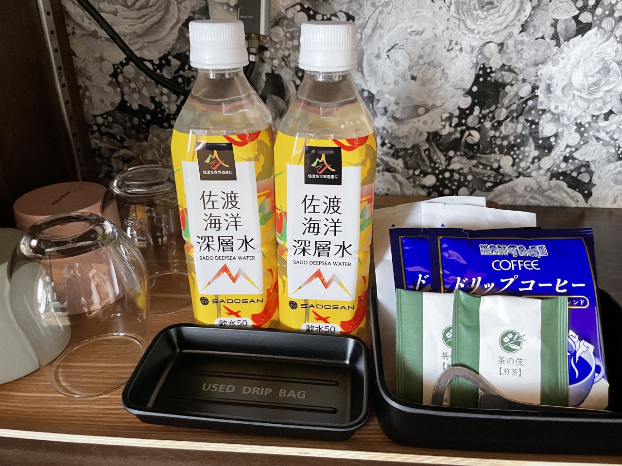 ツアーで2泊しました。2020年にリフォームしたばかりのお部屋は畳にベッドと使いやすく、トイレや洗面所も新しく、wifiも快適で、コンセントもちゃんと枕元にありました。20時と20時半から車で10分足らずの北沢浮遊選鉱場跡のライトアップに送迎してくれます(要予約)。所要時間往復込で30分足らずでした。21時からはロビーで佐渡おけさ、その後サックス演奏など盛りだくさんです。7000坪あるというお庭も、お庭というよりは自然海岸散策ですが、海浜植物をたくさん見ることができて楽しかったです。