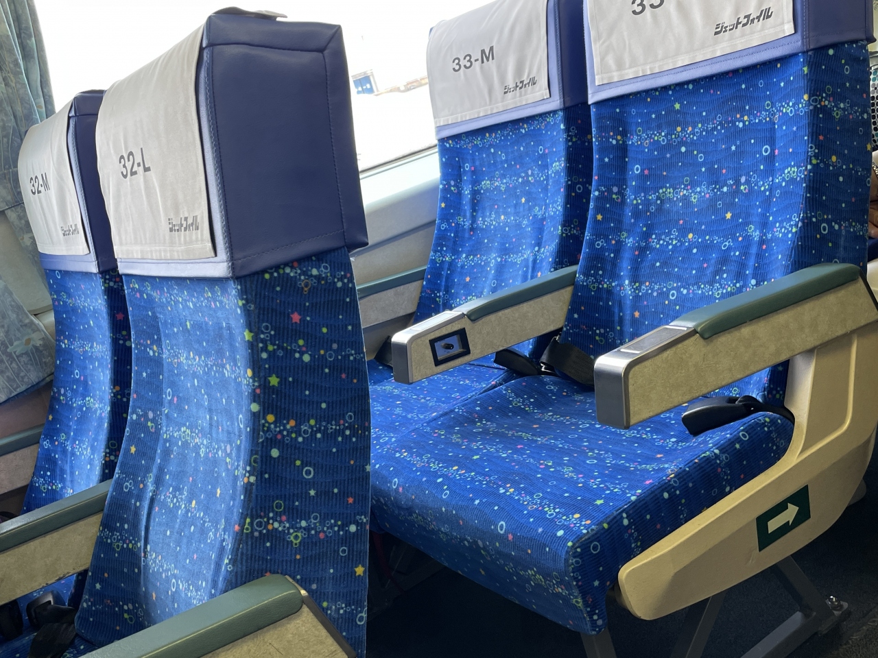 飛行機と同じく、全席指定で走行中はシートベルト着用です。