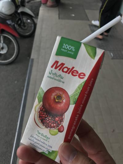 のどが乾いたのでザクロジュース(pomegranate juice)を...