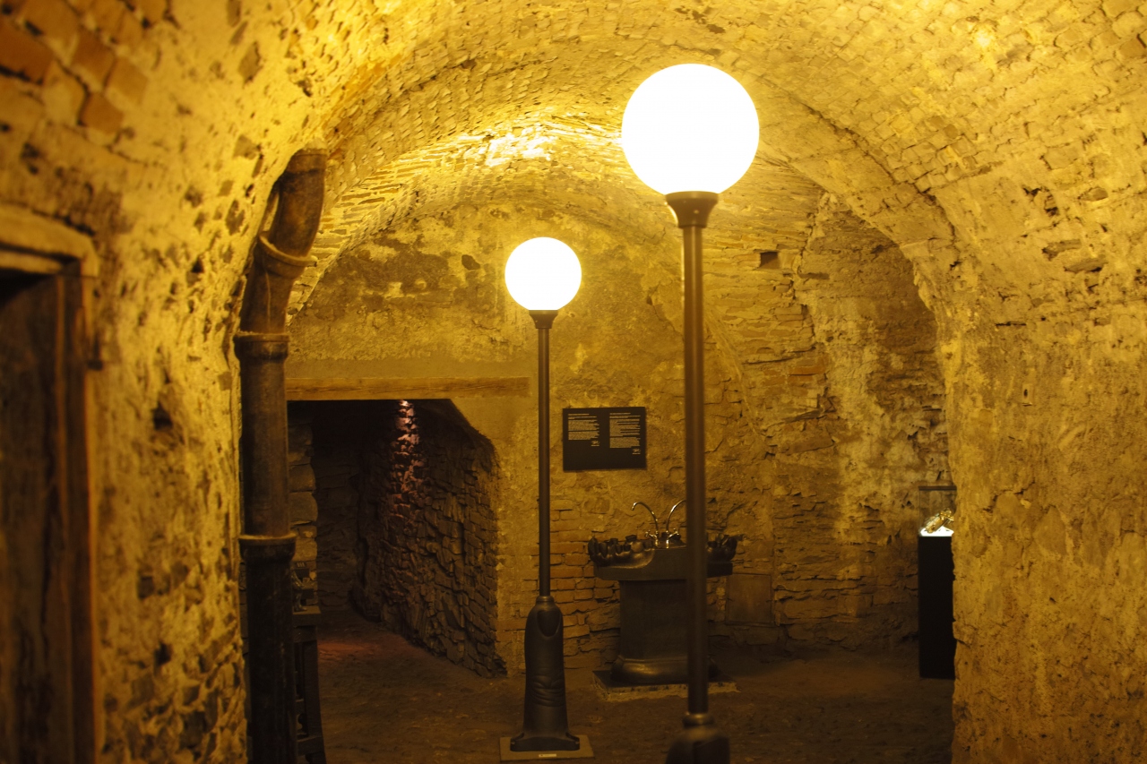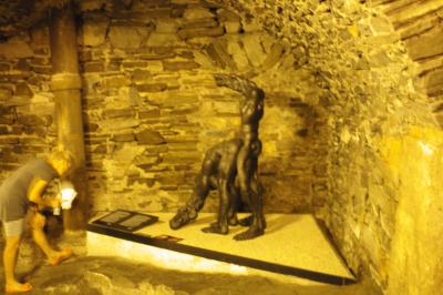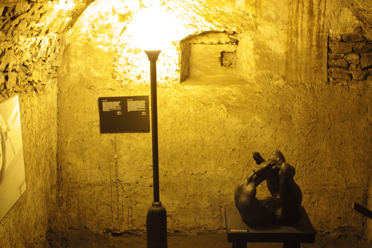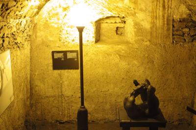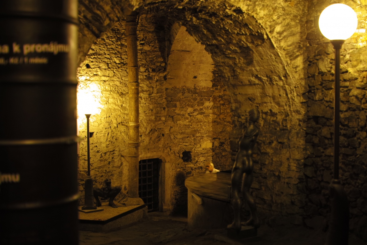 チェスキークルムロフ城内にある一風変わったギャラリーです。牢獄を改装したとのことです。中はその面影を残すように不気味で暗いです。さらにまたちょっとシュールで変わった現代アートを思わせるオブジェが多く展示されております。