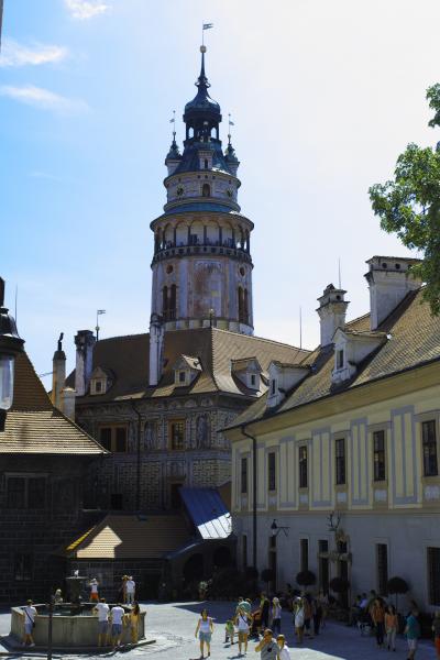 チェスキークルムロフ城と隣り合う感じ建っております。塔の頂上から見るチェスキークルムロフの街並みは素晴らしいです。キラキラ輝くブルタヴァ川の曲線と、ボヘミアの深い緑、街並みのパステル・カラーが最高です。ただし、塔の頂上までは急な階段を上っていくことになります。エレベーターはありません。