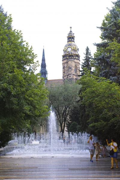 別名聖エリザベス大聖堂とのいうこの大聖堂は隣の礼拝堂とともにコシツェのシンボルで、とても美しいです。特に噴水の公園側からみると、高いほうの塔のシルエットが良いです。コシツェの街は駅からのメインストリートを中心に歩いて回るにはちょうどいい感じでした。