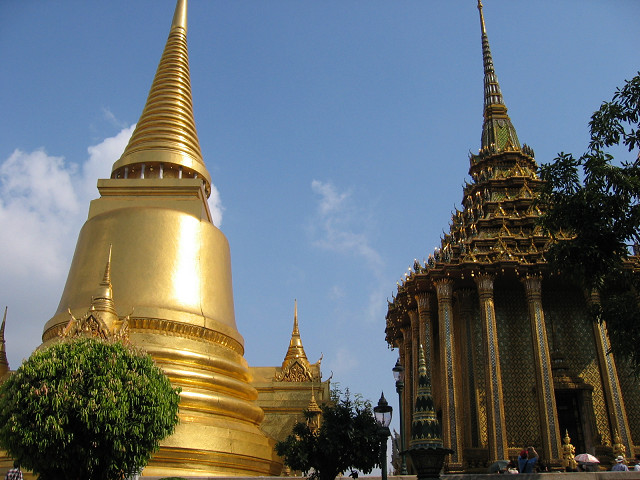 王宮は一目見て”???”な建物という印象です。おろらくヨーロッパにどこかの国の影響を受けたであろう構造様式ですが、屋根の部分はタイ(いわゆる仏教建築)の物かと思われます。屋根だけ何故か金ピカでした。ちょっとおもしろかったです。
