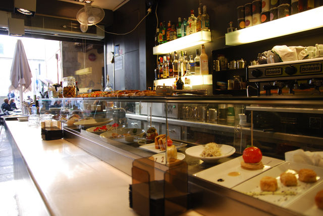 グラシア通りのカザ・バトリョから北に2ブロック程行って左折、2ブロック行った左側にある人気のバル。