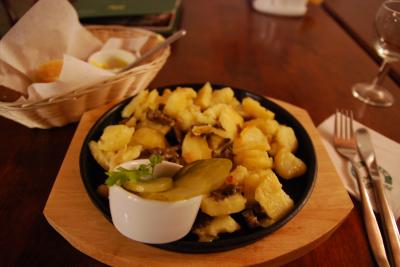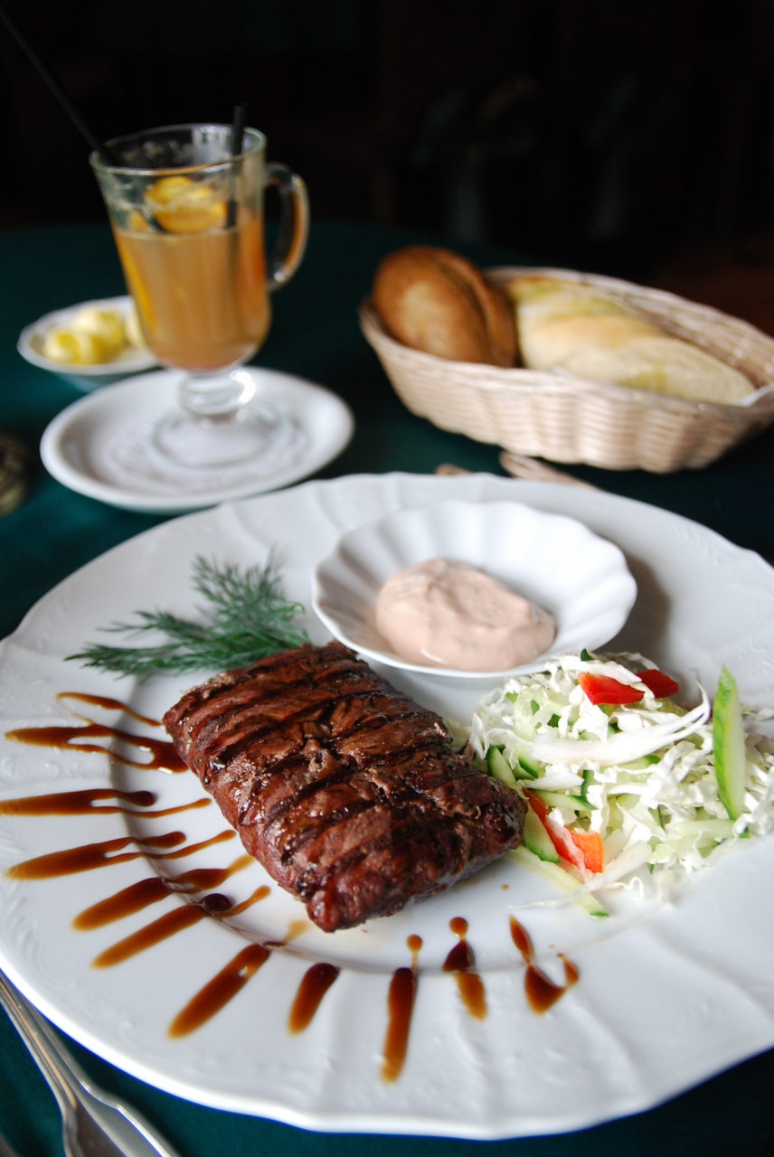 ランチで、ペテルブルグ・スタイル・ミート、ホットワイン、紅茶で1250ルーブルと