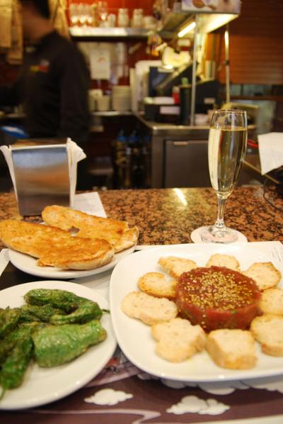 よくガイドブックに載っているマグロのタルタル(15.5ユーロ)が絶品。ひとりで行ったので食べ物4品とcava2杯でなんと42.77ユーロと割高になってしまいましたが、それだけの価値ある味でした。