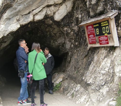 ロープウェイを降りると窓口でツアーの予約をしなければなりません。チケットにグループ番号を記入していただきます。氷結の入り口までは上り道だし20~30分時間がかかります。入り口には現在行われているツアーの番号が示されていますので(私たちの時は8番待ち時間00分)9番に変わるまで入り口付近で待機します。