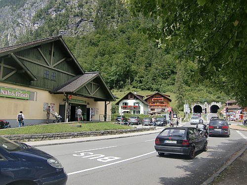 連絡船の船着場からはハルシュタット湖に沿って15分ぐらい歩きます。トンネルが見えて来たら近くにスーパーNah&Frisch とかかれたグリーンの看板が目に入ると思います。大体その真向いあたりがバス停のHallstatt-Lahnになります。本数が少ないですがオーバートラウン・ダッハシュタインのロープウェイへ行くバスもここから出ます。