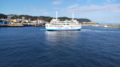 桜島港から桜島へはあっという間です ちょっと早めに乗船して中でうどん・そば