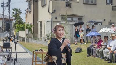 京終駅前の広場で、奈良の観光大使 池上真由美さんのショーがありました。