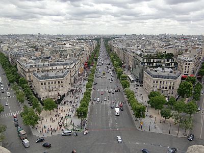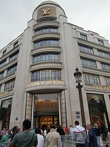 凱旋門に上るとシャンゼリゼ大通りが東にずっと伸びているのがよく見えます。シャンゼリゼ通りにルイ・ビィトン本店もあります。中に入るために外で並んでいる人が大勢います。この本店はありがたいことに日曜日も営業されているとのことです。