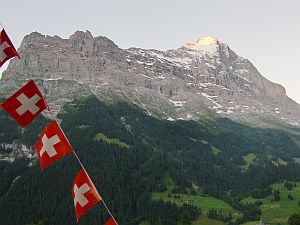 お天気が良ければ毎朝、頂上を赤く染めたアイガーを見ることができます。