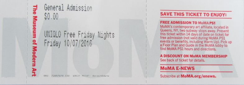 毎週金曜日16時から20時まで無料解放される。15時頃から54thSt.でチケットが配られるとのこと。18時頃行くとものすごい人でごった返していた。荷物はカメラとスマホだけにして出かけると荷物を預ける手間が省けると思う。