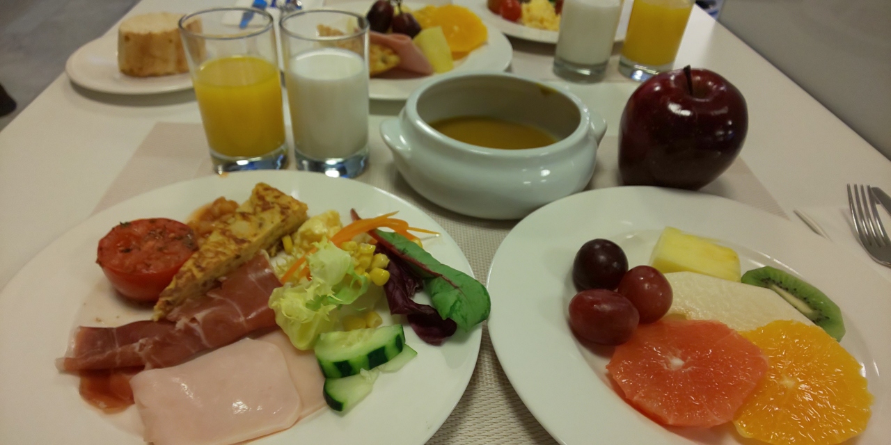 トレドからプエルタ・デ・アトーチャ駅に着いたあとスーツケースを引いて少し歩きました。思っていたよりも距離がありました。プラド美術館も近くの様な印象ですが歩くと結構距離があります。空港バス乗り場は地上にあるので一番楽でした。3泊したのですが朝食を2泊だけ付けました。9602円/2泊・2人は食事の質から言うと高い感じがします。