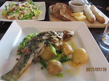 宿泊施設もあるのでそちらもお勧めです!6時くらいだと予約もなくOKでした。トラウトのソテーは臭みもなく柔らかくお値段も£14.50リーズナブルでした。あと Appertisers Bread £1.75はオリーブオイルとバルサミコ酢を付けて頂くのですが、これもとても美味しかったです!