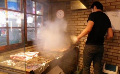 この店は、豚バラのかたまり肉をスモークした物をテーブルに運んできて、食べやすい大きさに切ってくれます。